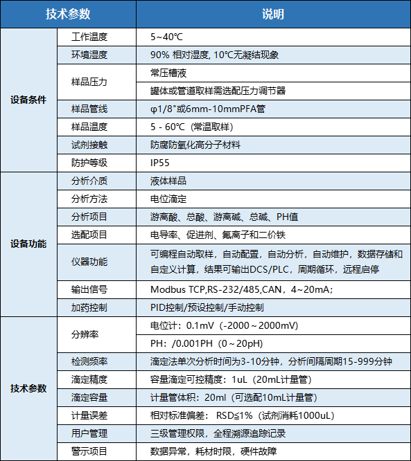 可選項目:電導(dǎo)率、促進(jìn)劑、氟離子和二價鐵